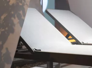 Инновационный во всех отношениях, выделяется двумя ключевыми элементами. Первый - это конструкция сиденья, которая максимально использует всю ширину каркаса, адаптируясь к профилю ножек, а также рационализирует компоновку. Второй элемент - запатентованный шарнирный механизм спинки, который позволяет плавно регулировать положение для достижения идеально ровного положения, делая его более практичным в использовании и легко складывающимся благодаря продуманной системе складывания.
