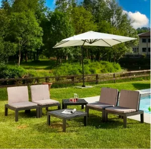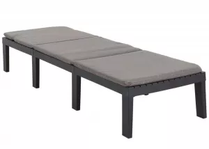 Многофункциональный складной шезлонг выполнен из пластика с имитацией структуры дерева. Размер шезлонга: 65x195x78 см. Вес изделия: 20,68 кг. Цвет шезлонга-антрацит. В комплект входят подушки: 4 подушки для модуля сидения + 1 подушка для шезлонга. Шезлонг может трансформироваться в 2 кресла и стол, (размер кресла:65х65х70 см, размер стола:65х65х32 см.), или 2-х местная софа и стол (размер софы: 130х65х70 см., размер стола: 65х65х32 см) Изготовлен из ударопрочного полипропилена, стойкого к воздействию окружающей среды. Материал: пластик. Максимальная нагрузка на каждое место 120 кг.
