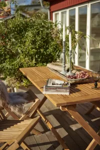 Создатели этого прямоугольного складного стола из натурального тика основной целью ставили достижение максимальной легкости конструкции и весьма в этом преуспели. Стол, действительно, обладает минимальным весом, не вызывает хлопот при устройстве на длительное хранение, а его натуральные поверхности устойчивы к неприятным воздействиям внешней среды. Он поистине идеален для оформления фуршетных вечеринок на лоне природы. Поскольку, обладая перечисленными ранее достоинствами, имеет при этом достаточно большую площадь столешницы и весьма надежное основание конструкции. Характеристики