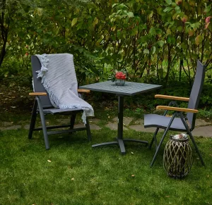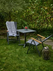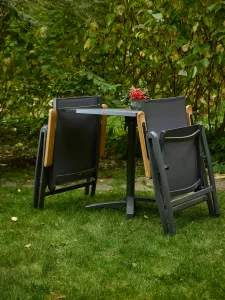 Комплект создан для того, чтобы служить вам долгие годы. Стол и кресла изготовлены из высококачественного нержавеющего алюминия, который не подвержен коррозии и легко выдерживает испытания временем. Покрытие порошковой краской цвета антрацит не только придает комплекту стильный и современный вид, но и обеспечивает дополнительную защиту от влаги, атмосферных воздействий и механических повреждений.