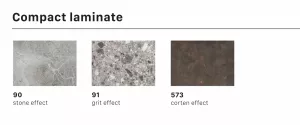 - Материал - компакт-ламинат HPL. Это композитный материал из прочных плоских панелей, которые с двух сторон ламинированы пластиком. Столешница обладает высокой устойчивостью к физическому, механическому и температурному воздействию. Отличается высокой прочностью, ламинированный слой защищает столешницу от различных возможных деформаций и химических воздействий на поверхность. Ламинированная столешница имеет целый пакет характеристик: ударопрочный материал, защищающий от физических воздействий колющих, режущих и царапающих инструментов, слой ламината-пленки, защищающий поверхность от химических воздействий влаги, кофе, уксуса и других.