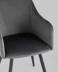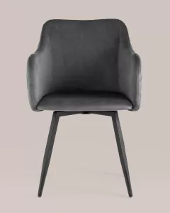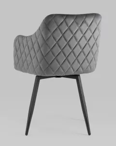 Мягкий стул с округлой спинкой анатомической формы и удобными подлокотниками подарит комфорт и уют. В качестве обивки используется велюр - прочный износостойкий и приятный на ощупь материал. Внешняя сторона спинки и подлокотников имеет декоративную строчку в виде ромбов.