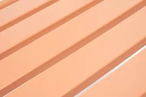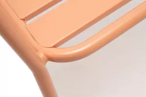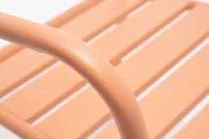Стул изготовлен из стального каркаса, окрашенного порошковой износостойкой краской светло-кораллового цвета.