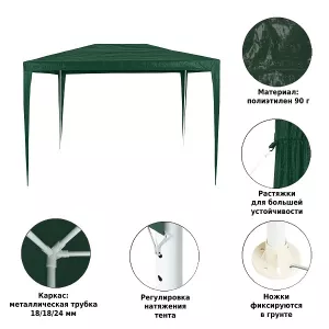 Тент садовый из полиэстера практичное и популярное решение для использования на даче, пикниках, шашлыках и кемпинге. Крыша тента защитит от солнца. Тент садовый из полиэстера быстро и несложно монтируется и закрепляется с помощью растяжек.