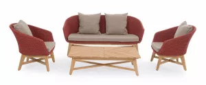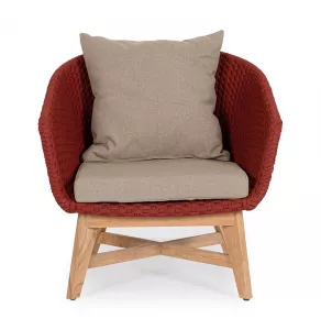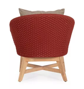Тиковое кресло плетеное с роуп с подушкой, алый