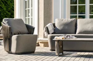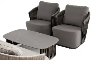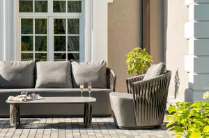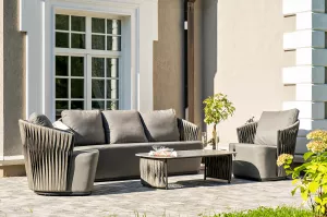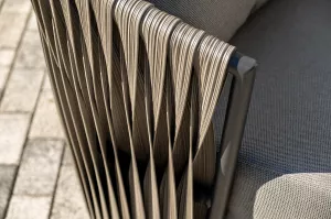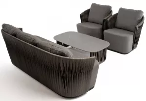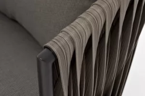 Из алюминия сделан устойчивый каркас мебели. Ее поверхность дополнена искусственным ротангом, из которого сделано ручное плетение - 50Ч3 мм, цвет графит.