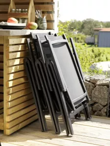 Кресла: металлический каркас с порошковым напылением. Между прутьями которого натянута крепкая, просвечивающаяся сетка. Сетка хороша тем, что обеспечивает отличную вентиляцию. В комплекте 10 складных кресла.