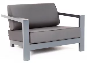 Стильное кресло для создания зоны отдыха. Каркас выполнен из высокопрочного легкого алюминия темно-серого (RAL7024) цвета. На сидениях и спинке предусмотрены подушки темно-серого оттенка.