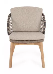 это кресло с высококачественным плетением и деревянными ножками. Оно станет прекрасным дополнением для разнообразных открытых пространств различных проектов. Великолепная комбинация плетения из роупа, которое обвивается вокруг алюминиевой рамы, и ножек из тика, славящегося своей прочностью и надежностью, позволяющей использовать мебель из этой древесины на свежем воздухе, придает модели гостеприимный и домашний характер.