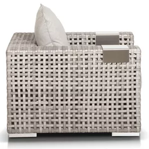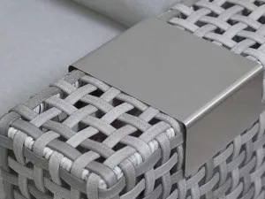 Корпус мебели изготовлен из прочного алюминия и оплетен вручную плоским искусственным ротангом. Цвет серый.