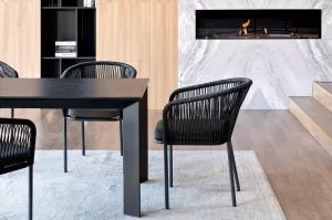 - 4 плетеных стульев из роупа, размером - 570Ч620Ч775 мм, цвет роупа - темно-серый, каркас из алюминия, окрашен порошковой краской в темно-серый оттенок.