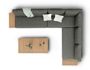 Уличный угловой диван из алюминия с тиком, антрацит