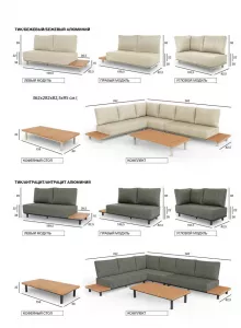 Размеры дивана: 362х282х82,5х95 см , стол 156х80х32 см