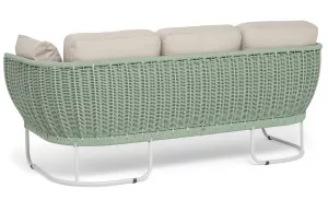 Зеленый диван 3-х местный плетеный из роупа, каркас алюминий