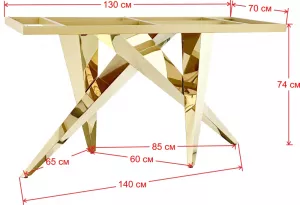 Подстолье из полированной нержавеющей (зеркальное) стали золотого цвета (нитрит титана). Рекомендуемый размер столешницы: 160х90 см Характеристики
