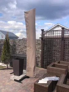 - Купол выполнен из акрила 350 г/мІ с пропиткой. Варианты цвета: слоновая кость (A1), терракота (T2), бордовый (T3), серо-коричневый (T6), белый (T7), серебристо-серый (T8), антрацит (T9), черный (S1). Цена на сайте указана для зонта с куполом в цвете слоновая кость (A1) без волана.