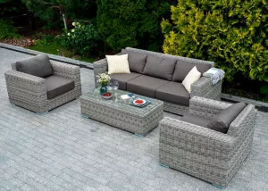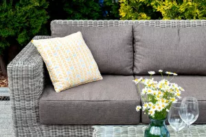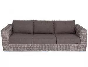 Плетеный трехместный диван в комплекте с подушками, алюминиевый каркас, круглый искусственный ротанг, ручное плетение, толщина подушки: 150 мм. Диван предназначен для использования на открытом воздухе. Характеристики
