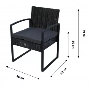 Габариты элементов (Ш/ГхДхВ) : кресло:58x55x76см кофейный стол:42x40,6x40см закаленное стекло: 0,5см