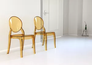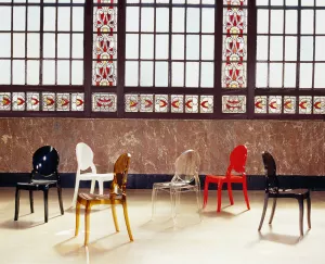 Пластиковый прозрачный стул изготовлен из прозрачного поликарбоната Makrolon® - чрезвычайно прочного, легкого материала со стеклянной прозрачностью и устойчивостью к ударам даже при низких температурах. Благодаря отсутствию металлического каркаса и устойчивости к ультрафиолетовому воздействию стулья из пластика можно использовать в том числе и на открытых площадках.