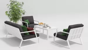 Белая уличная мебель из алюминия лаунж комплект на 4-х