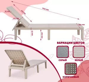 Изделие представляет собой идеальное решение для комфортного отдыха на свежем воздухе сочетает в себе функциональность, стильный дизайн и практичность, что делает его отличным выбором для любителей солнечных ванн в саду и на пляже.