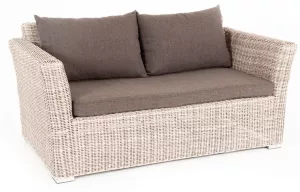 Диван из искусственного ротанга подходит для удобного размещения двух персон. Он имеет алюминиевый каркас, который выдерживает высокие нагрузки.