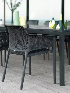 Пластиковый раздвижной стол с архитектурными деталями и яркой индивидуальностью разработан для создания гибких и современных пространств. Решетчатая столешница DurelTop с УФ-обработкой и окрашенная алюминиевая рама обеспечивают долговечность и надежность модели. Благодаря вставкам длина стола может изменяться от 1400 до 2100 мм, таким образом за столом без проблем может поместиться до 8 человек. Надежная и функциональная модель станет идеальным решением для столовой на открытом воздухе, сада, террасы или площадки возле бассейна.