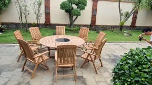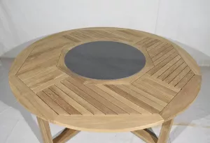 Отделка стола настолько качественная, что вы можете провести по ней рукой, и она кажется цельным куском дерева. Поставляются в комплекте с гранитным сервировочным подносом (включая поворотную фурнитуру). Тик премиального качества.
