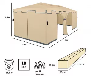Большой шатер 3х6 для дачи из полиэстера практичное и популярное решение для использования на даче, пикниках, шашлыках и кемпинге. Крыша тента защитит от солнца. Тент садовый из полиэстера быстро и несложно монтируется и закрепляется с помощью растяжек.