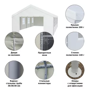 Большой садовый шатер практичное и популярное решение для использования на даче, пикниках, шашлыках и кемпинге. Крыша тента защитит от солнца. Тент садовый быстро и несложно монтируется и закрепляется с помощью растяжек.