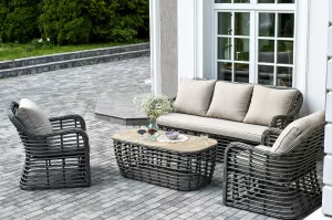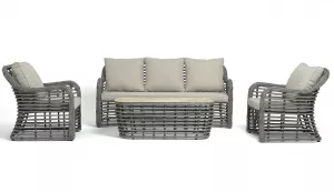 Дачная лаунж-зона из искусственного ротанга, цвет серый