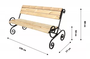 Дополнительно : Деревянные элементы не окрашены, доска строганная; Толщина металла 1.2; Толщина доски 3,5. Глубина сиденья 45 см; Длина общая со стойками 156, длина 150.