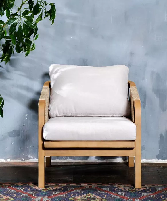 Деревянное кресло из акации с плетением роуп, размеры: 70 длина x80 ширина xh68 см высота, 80 см глубина посадки( 45 см высота посадки,10 см подушка)