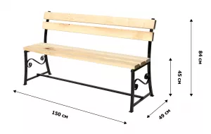 Деревянные скамейки со спинкой для дачи, металлокаркас 150 см