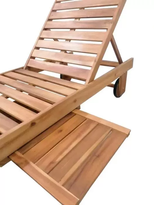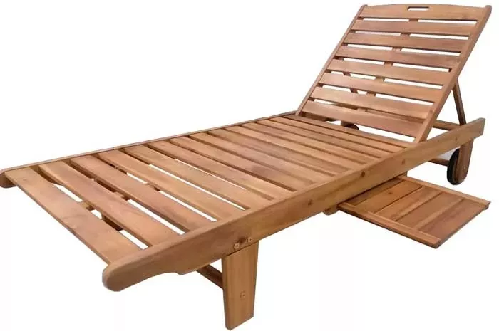 Деревянный лежак из акации на колесах с выдвижным столиком