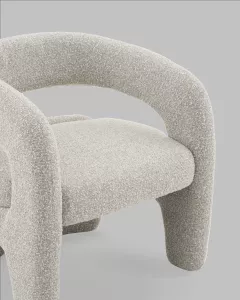 Кресло лаунж - идеальное решение для тех, кто ценит не только комфорт, но и стильный дизайн. Плавные формы захватывают взгляд своей игривостью и элегантностью. Обивка выполнена из ткани букле - красивого и очень мягкого материала, дающее ощущение теплоты и уюта.