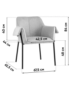 Кресло характеризуется классическим строгим дизайном и элегантностью. Прочный металлический каркас и ножки в черном цвете поддерживают сидение, и выдерживают нагрузку до 150 кг. Обивка стула выполнена из прочной износостойкой экокожи. Такой материал не боится влаги и прост в уходе. Высота подлокотников от сидения 36 см.