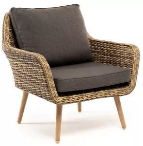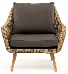 В комплекте с уличным ротанговым креслом идут мягкие подушки со съёмными чехлами серого оттенка. Они пошиты из полиэстера, который не боится повышенной влажности благодаря наличию влагоотталкивающей пропитки. Плотность ткани составляет 300гр/м2.