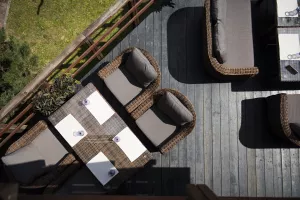 Подушки выполнены из водостойкой полиэфирной ткани для защиты мебели от дождя и солнца