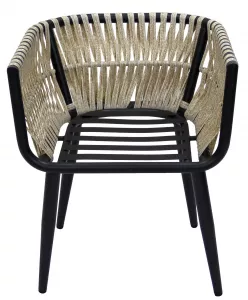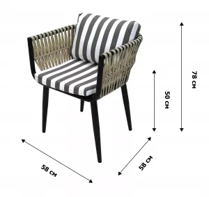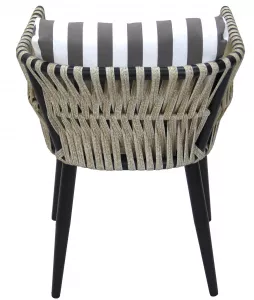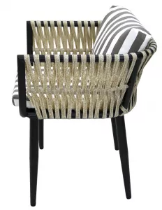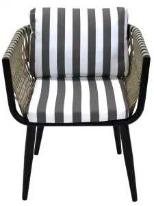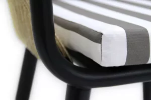 Кресло к набору (каркас черный, ротанг жемчуг, ткань ПОЛОСКА