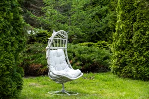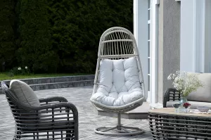 Кресло-кокон из искусственного ротанга, цвет светло-серый