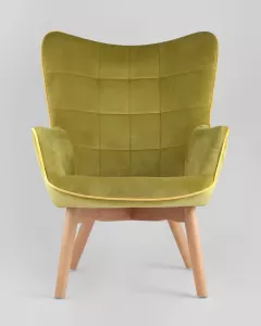 Кресло мягкое оливковый с высокой спинкой и подлокотниками