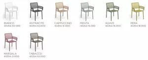 Цветовая гамма обширна и особенно глубока. Для самых непринужденных и романтических пространств кресло предлагает всегда изысканный белый цвет; антрацит и табак для более индустриального и городского настроения, теплые цвета капучино, чтобы гармонировать с историческим контекстом, марсала для тех, кто ищет нотку оригинальной эксцентричности. Зеленые оттенки, представленные мятой, грушей и агавой, неизбежны для более натурального пространства. Коллекция также пополнится широким выбором подушек подходящих цветов.