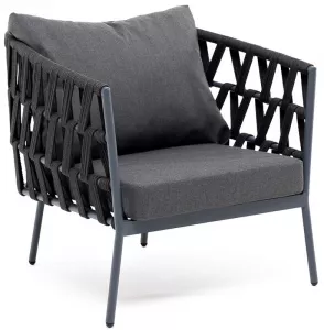 Кресло плетеное из роупа, каркас алюминий, темно-серый