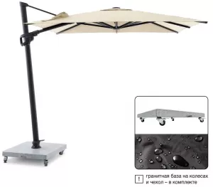 Основание зонта: гранит, вес- 130 кг, квадратная форма, размер: 80x80x6 см светло-серая полировальная поверхность, с колесами.