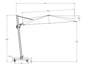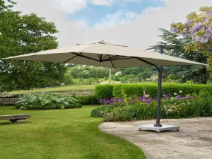 Подвесной квадратный зонт на боковой опоре.