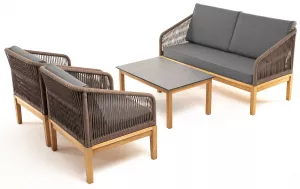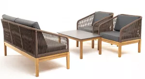 Лаунж-зона 4-местная из дуба и роуп коричневый