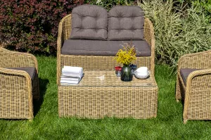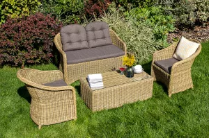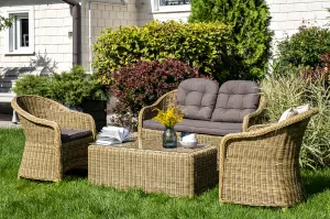 Комплект для лаунж-зоны из искусственного ротанга рассчитан на 4 персоны.