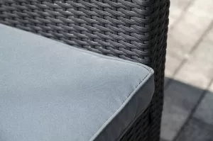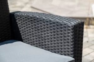 В основе мебели - стальной каркас и плоский искусственный ротанг. Каркас оплетен с помощью ручного метода и представлен в черном цвете.