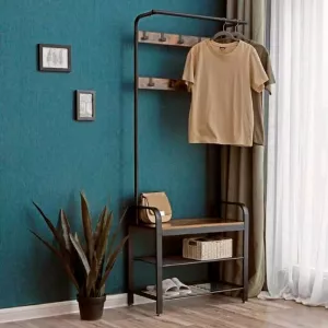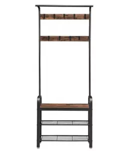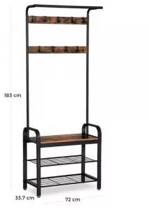 С помощью этой великолепной вешалки вы сможете избавиться от беспорядка в прихожей; сочетание четких линий и стиля лофт придаст ей современный и элегантный шарм. Это обувница, скамейка и вешалка в одном флаконе. Эта вешалка для обуви приглашает гостя почувствовать себя как дома